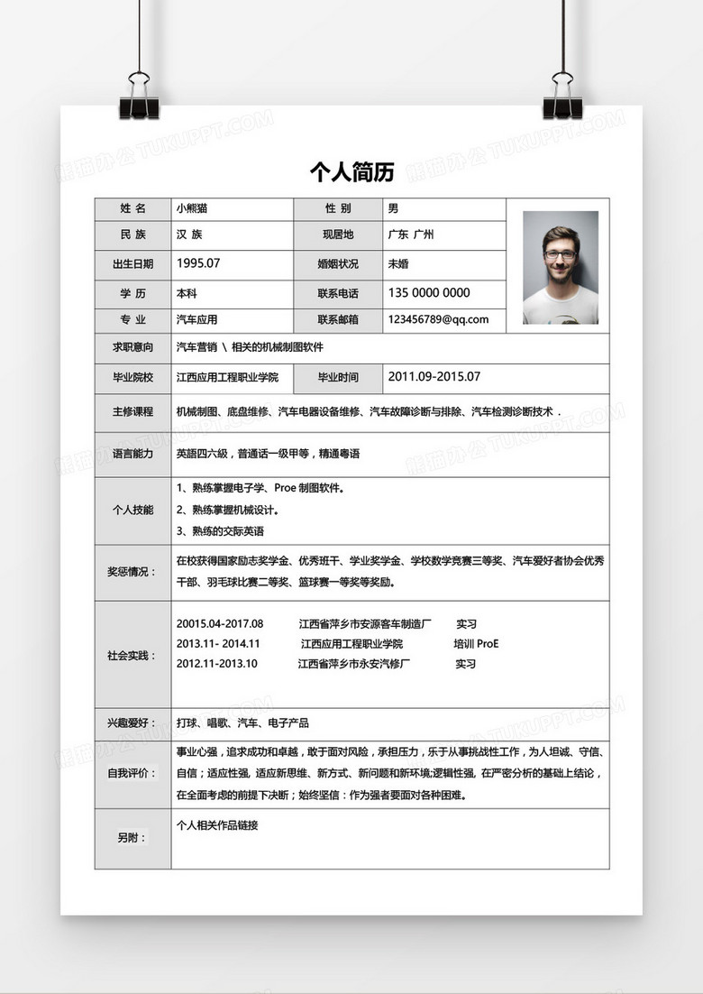 5、其他信息:興趣愛好、個(gè)人特長等,可根據(jù)實(shí)際情況添加。