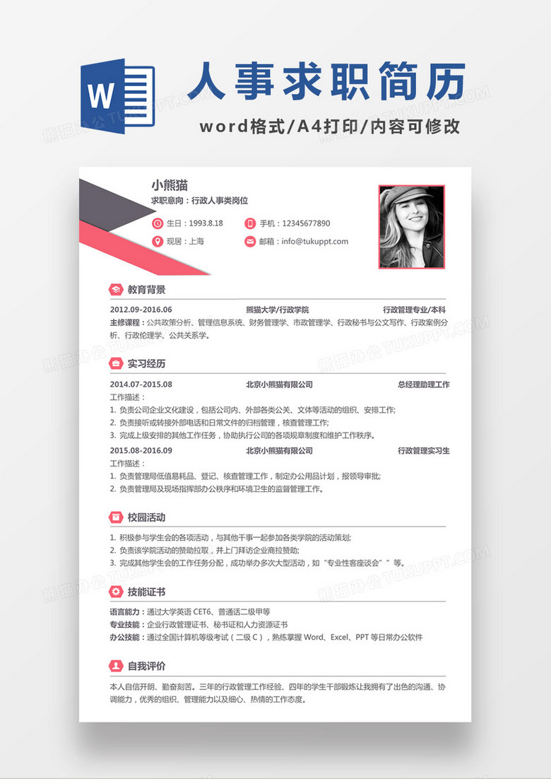 個(gè)人簡歷模板(Word格式)介紹