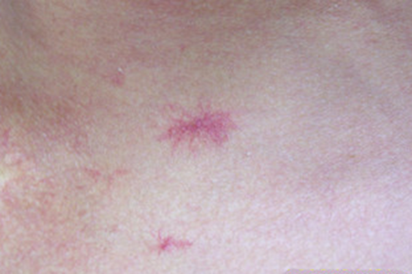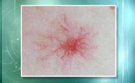 1、紅點(diǎn)形態(tài):肝癌身上出現(xiàn)的紅點(diǎn)通常呈現(xiàn)蜘蛛狀,中心部位為紅色斑點(diǎn),周圍呈放射狀血絲。
